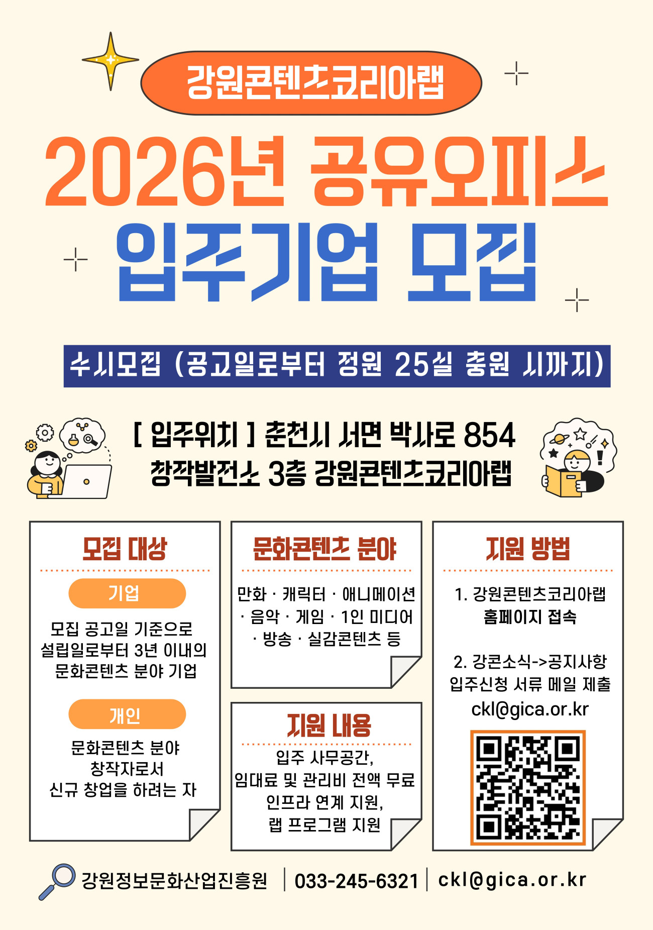 가. 공 고 명: 2026년 강원콘텐츠코리아랩 입주기업(개별실) 모집 공고