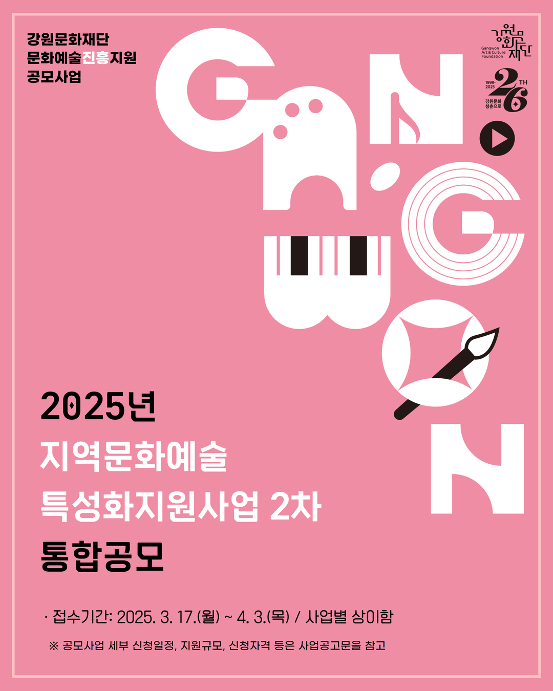 [홍보협조] 2025년 지역문화예술특성화지원사업 2차 통합공모(강원문화재단)